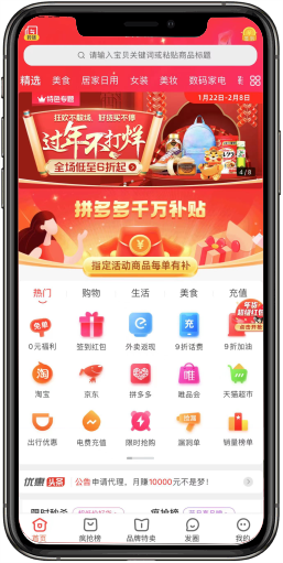 1、从APP内栏目或商品分类里挑选商品下单,如:9.9包邮、淘抢购、母婴等;